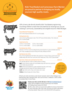 Kids’ Food Basket and Lamoreaux Farm Market are proud to partner in bringing you locally sourced, high-quality meats. 40% of every sale directly benefits Kids’ Food Basket programming, nourishing children to reach their full potential. By choosing local, you are investing in community, sustainability and a brighter future for West Michigan.